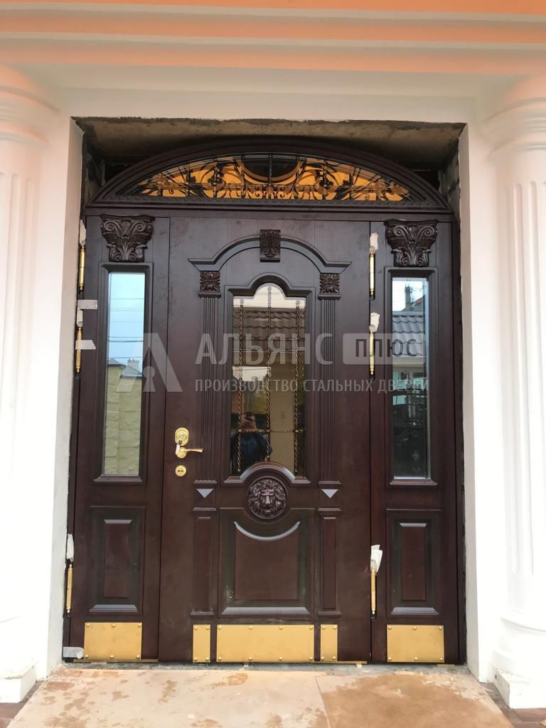 Если нужно подчеркнуть статус, отлично работает элитная дверь: она может быть из массива или комбинировать массив дерева с металлом и ковкой. Массив дерева в таком случае идёт в отделку внутренней или внешней стороны, образуя тёплый визуальный образ, а стальной каркас внутри отвечает за прочность.